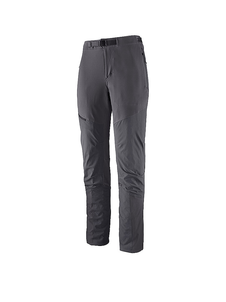 Eine vollwertige, leichte Softshell-Hose mit hoher Robustheit für lange, alpine Felsrouten und lange Touren oberhalb der Baumgrenze Das leichte Material aus Recyceltes Polyester und Elastan bietet besten Stretch für volle Beweglichkeit Robuste Einsätze aus Recycling-Nylon und Recycling-Elastan verleihen zusätzlichen Schutz gegen rauen Fels Eine PFC-freie DWR Imprägnierung (dauerhaft wasserabweisend ohne perfluorierte Chemikalien) weist Nässe ab und hält trocken Ergonomisches Design für absolute Beweglichkeit, lange Zustiege und dauerhaften Komfort unter einem Klettergurt Der schlank anliegende Konturbund mit ganz öffnendem Reißverschluss und integriertem, verstellbarem Gürtel verleiht präzisen Sitz und anhaltenden Komfort unter einem Kletter- oder Hüftgurt Sichere Taschen vorn und rechts hinten mit luftigen Netzeinsätzen und flacher Konstruktion für Komfort unter dem Klettergurt Eine Reißverschluss-Beintasche rechts, die oberhalb des Knies und unterhalb der Beinschlaufe sitzt Robuste Einsätze an der Innenseite schützen die Unterschenkel vor Abrieb und Beanspruchung Die Bündchen lassen sich mit einer Elastikkordel und Stopper regulieren Fairtrade™-zertifizierte Konfektion Material: 159 g/m² Schaftgewebe aus 86% Recycling-Polyester und 14% Elastan Gewicht: 323 g Farbe: Schwarz