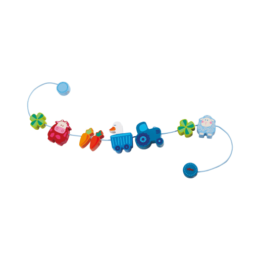Die HABA - Kinderwagenkette Muh & Mäh ist ein wunderbarer Begleiter an Kinderwagen und Babyschale. Die lustige rote Kuh und das Schaf gehen gern mit auf jede Fahrt. Die kleine Gans hat es bequem, sie wird vom Traktor gefahren. Mit diesen tierisch-tollen Begleitern ist gute Laune und Abwechslung unterwegs garantiert. Die niedlichen Motive sind aus bunt lackiertem Buchenholz in Deutschland hergestellt. Mit 70 cm Länge lässt sich die Kette gut an Kinderwagen oder Babyschale anbringen. Noch leichter geht es mit den magnetischen Halteschlaufen von HABA (1300343001). Die Kinderwagenkette Muh & Mäh ist ein schönes Geschenk zur Geburt oder Taufe!
