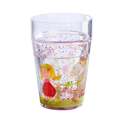 An einem wunderschönen Frühlingstag genießen Vicki und Pirli die Sonne. Dabei erfreuen sie sich an den funkelnden Glitzerteilchen, die in der Wand des tollen HABA-Glitzerbechers Vicki & Pirli umherschweben. Aus solch einem außergewöhnlichen Becher schmeckt kleinen Blumenmädchen das Lieblingsgetränk gleich nochmal so gut. Mit einem Durchmesser von 7,5 cm ist der zauberhafte Trinkbecher genau richtig für zierliche Kinderhände. Darüber hinaus ist der HABA-Glitzerbecher Vicki & Pirli aus robustem Kunststoff und kann leicht gereinigt werden. Einschenken, bitte!