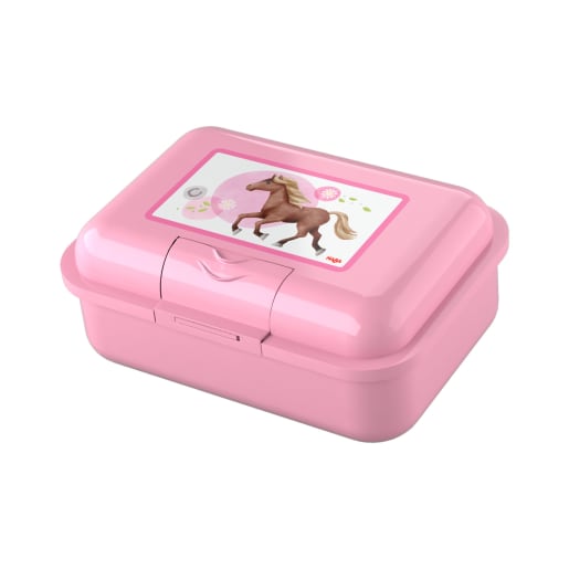 Wenn die Pausenglocke läutet, werden in Kindergarten und Schule erwartungsvoll die Rucksäcke geöffnet. Kleine Mädchen freuen sich besonders, wenn darin die niedliche HABA-Brotdose Vicki & Pirli wartet. Mit einer Größe von 13 x 18 x 6,5 cm bietet sie viel Platz für Apfelschnitze und lecker belegte Pausenbrote. Der clevere Verschluss der Brotdose lässt sich von Kindern problemlos bedienen und sorgt gleichzeitig dafür, dass sich der Deckel im Rucksack nicht ungewollt öffnet. Die HABA-Brotdose Vicki & Pirli in der Lieblingsfarbe Rosa ist aus robustem Kunsstoff gefertigt und übersteht daher so manchen Sturz. Sogar die Spülmaschine macht ihr nichts aus!