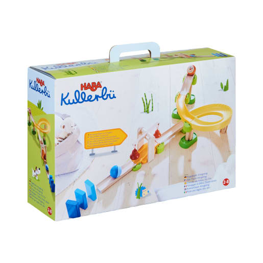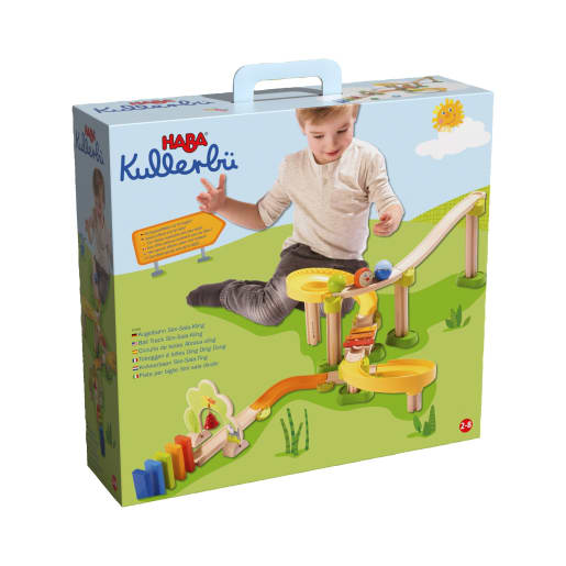 Klingeling! – bei der gleichnamigen Kullerbü-Kugelbahn von HABA kommt Kugel Paul angeflitzt und bringt gleich zwei Glöckchen zum Klingeln. Doch zuvor geht es für ihn erst einmal durch eine rasante Kugel-Steilkurve, in der er ordentlich Schwung holt. Anschließend saust Kugel Paul hinab auf eine Gerade und über die Glöckchen-Wippe, um im Zieleinlauf mit Karacho mehrere Dominosteine zu Fall zu bringen. Das macht riesengroßen Spaß – und deshalb geht es auch gleich auf zu einer neuen Runde Kullervergnügen mit Kugel Paul. Die Kullerbü-Kugelbahn Klingeling von HABA eignet sich perfekt für Nachwuchs-Baumeister ab 2 Jahren: Bereits der Aufbau fördert Kreativität und Feinmotorik, während das Spiel Beobachtungsvermögen und Experimentierfreude schult. Ein Muss für jedes Kinderzimmer!Für alle, die mehr über Kullerbü erfahren wollen, gibt es Vorlese-Geschichten, DIY-Inhalte, Informationen für die Eltern und Spiele in der Themenwelt Kullerbü.