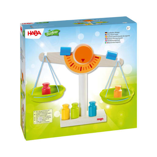 Mit der HABA-Kaufladen-Waage wird das Abwiegen von Waren ein Kinderspiel! Wie bei einer echten Waage können die Kleinen zum Beispiel Obst oder Gemüse aus dem Kaufladen in die eine Kunststoffschale legen. Nun kommen die entsprechenden Gewichte in die andere Waagschale. Die farbenfrohe Gestaltung der HABA-Kaufladen-Waage animiert immer wieder zum Ausprobieren und die Ausgleichsgewichte erleichtern das Ausbalancieren. Dank der großen Messskala lassen sich die Ergebnisse gut ablesen und die Kinder bekommen schnell heraus, wie das Abwiegen geht. Die HABA-Kaufladen-Waage ist ein echter Glücksgriff für kleine Verkäufer und die perfekte Ergänzung für Kaufladen-Rollenspiele.