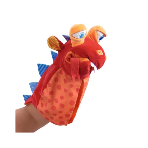 Die HABA-Handpuppe Allesfresser trägt ihren Namen zu Recht. Ihr großes Maul geht ganz schön weit auf, um Gegenstände zu schlucken. Ihr Lieblingsfutter ist eine Kunststoffkugel. Mampf, mampf – und schon landet die Kugel in der Bauchtasche im Innern der Handpuppe. Kinder können alles, was die Handpuppe futtert, auch wieder herausholen. Mit seinen blauen Rückenschuppen, dem langen Hals und der gespaltenen Zunge erinnert der Allesfresser an einen Drachen oder eine Schlange. Die Augen der HABA-Handpuppe lassen sich mit zwei Fingern bewegen und sorgen für jede Menge Unterhaltung – daheim oder unterwegs. Perfekt geeignet für Kinder ab 18 Monaten.
