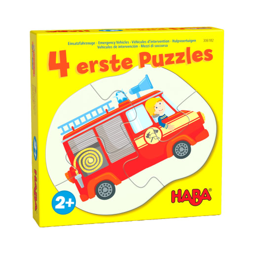 Die ersten Puzzles von HABA sind ideal für kleine Hände und ein perfekter Einstieg ins Puzzle-Vergnügen, denn sie bestehen aus nur wenigen, großen, stabilen und gut zu greifenden Teilen. Die 6 ersten Puzzles – Fahrzeuge zeigen Bagger, Feuerwehr- und Polizeiauto, Kipper, Traktor und Rennwagen, jeweils mit ihren Fahrern. Genau das richtige für kleine Fahrzeugfans! Sind alle Teile zusammengepuzzelt, können den Puzzles die passenden Bildkärtchen zugeordnet werden. Inkl. einer Holzfigur zum freien Spielen.