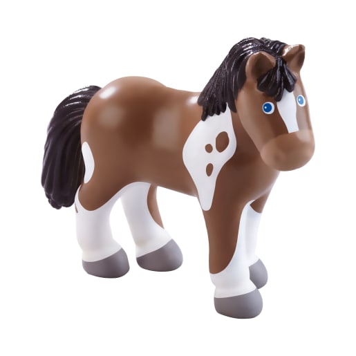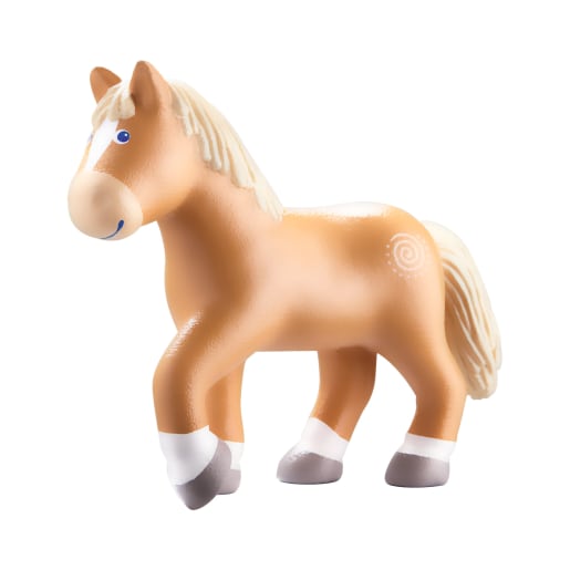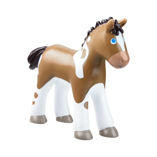 Ganz schüchtern blickt das junge Fohlen Abby aus der HABA-Serie Little Friends um sich. Doch seine wachen, strahlend blauen Augen verraten auch viel Neugier. Abby ist neben Fohlen Lissi der jüngste Nachwuchs unter den Little Friends-Pferden und wird von allen besonders verwöhnt. Es ist braun-weiß gescheckt und zieht gerne die Blicke auf sich. Schweif und Mähne sind noch kurz. Das Little Friends-Fohlen Abby ist die perfekte Ergänzung für den Bauernhof sowie den Reitstall der Little Friends. Kinder ab 3 Jahren haben aber auch im freien Spiel viel Spaß an dem niedlichen Fohlen.Für alle, die mehr über die Little Friends erfahren wollen, gibt es Vorlese-Geschichten, DIY-Inhalte, Informationen für die Eltern und Spiele in der Themenwelt Little Friends.