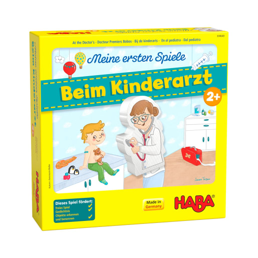 Horchen, Schmieren, Medikamente verabreichen – in der Praxis von Kinderärztin Dr. Liebherz gibt es viel zu tun. Linus muss geimpft werden, Greta hatte einen Unfall und Emma hat Husten. Bei dem Spiel Beim Kinderarzt aus der Reihe Meine ersten Spiele von HABA können Kinder ab 2 Jahren der Ärztin beim Behandeln ihrer kleinen Patienten helfen und sich mit den Instrumenten vertraut machen, die sie auch beim nächsten Kinderarztbesuch sehen werden. Beim gemeinsamen Spielen nach ersten Regeln ist ein gutes Gedächtnis gefragt, wenn die Spieler die richtige Behandlung für ihre Patienten wählen sollen. Wer noch mehr über den Alltag in der Arztpraxis erfahren möchte, kann in der interaktiven Spielgeschichte einen Tag beim Kinderarzt miterleben.