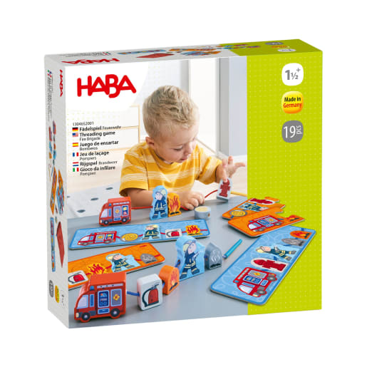 Für kleine Feuerwehr-Fans ist das HABA-Fädelspiel Feuerwehr genau das richtige Geschenk! Die Aufgabenkarten und die Fädelsteine zeigen spannende Motive rund um die Feuerwehr. Die beidseitig bedruckten Aufgabenkarten verraten, in welcher Reihenfolge die Fädelsteine auf die Schnur aufgefädelt werden sollen. Die Holzfiguren eignen sich aber auch prima zum freien Spielen und sorgen sogar unterwegs für einen tollen Zeitvertreib. Ganz nebenbei schult das fröhliche Fädelspiel Feuerwehr von HABA die Feinmotorik und Fingerfertigkeit. Da die Fädelsteine aus Holz gefertigt sind, versprechen sie langanhaltenden Spielspaß. Dank der mitgelieferten Spielidee können bis zu 2 Kinder das Fädelspiel spielen.