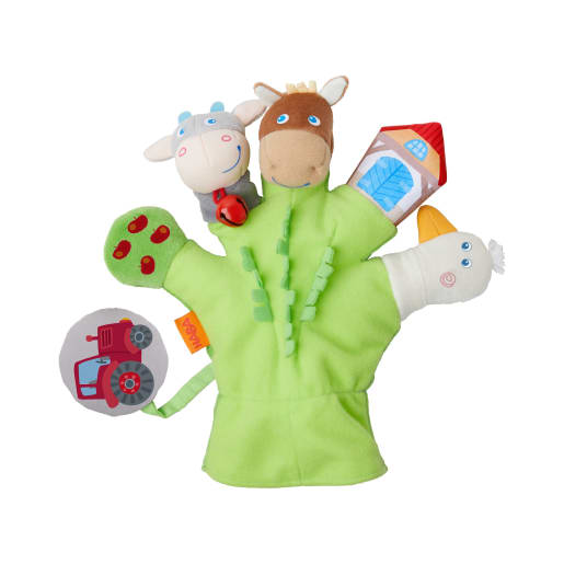 Fingerspiele machen Babys glücklich und sind ein toller Zeitvertreib für daheim sowie auch unterwegs. Jeder Finger erweckt dabei ein anderes Tier oder Spielelement zum Leben – mal die Kuh, mal das Pferd, mal den Baum. Mit dem Spielhandschuh Bauernhof von HABA lassen sich tolle Bauernhofgeschichten erzählen. Und dabei klappert, knistert oder klingelt es so schön! Eltern, aufgepasst: Spielhandschuh überziehen und der Fantasie freien Lauf lassen! Im Nu zaubern die Fingerspiele ein Lächeln auf das Gesicht der Kinder. Der HABA Spielhandschuh Bauernhof ist ruck zuck eingepackt und lässt sich überallhin mitnehmen.