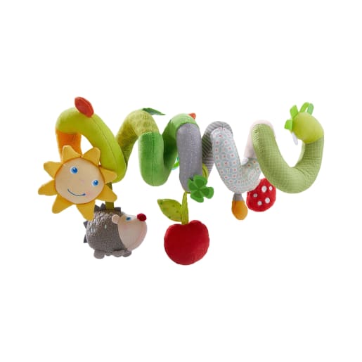 Diese Mobile-Spirale von HABA macht Babys besonders glücklich, denn hier gibt es eine Menge zu entdecken: fröhliche Farben, unterschiedliche Stoffe sowie spannende optische und akustische Elemente. Vor allem die niedlichen Figuren machen neugierig: Igel, Sonne und Kirsche faszinieren Babys von Geburt an dank spannender Effekte wie Rassel, Knister- oder Spiegelfolie. Die Mobile-Spirale Glück von HABA ringelt sich aufgrund ihrer Form perfekt um den Griff von Babyschalen und hält so die Jüngsten unterwegs bei bester Laune. Zuhause kann sie am Gitterbett befestigt werden, wo sie Babys eine tolle Beschäftigung bietet.