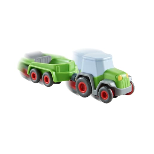 Der Traktor mit Anhänger bringt tierisches Bauernhof-Vergnügen nach Kullerbü! Über Felder und Wiesen – und über alle Kullerbü-Spielbahnen – geht’s mit dem Kullerbü-Traktor inklusive Anhänger. Da schlagen die Herzen kleiner Bauernhof-Freunde garantiert höher. Besonders praktisch: Im Anhänger lassen sich die Kullerbü-Kugeln transportieren. Wird der Anhänger mal nicht gebraucht, kann er einfach aus der Magnethalterung gelöst werden. Die robusten Kunststoffräder sorgen immer für eine sichere Fahrt. Der Traktor erweist sich beim Einsatz in der Kullerbü-Sound-Spielbahn Bauernhof (1305397), der Kullerbü-Kugelbahn Hühnervilla (1305396) und der Kullerbü-Kugelbahn Kegelfarm (1305414) als praktischer Helfer. Kinder ab 2 Jahren haben aber auch im freien Spiel eine Menge Spaß mit dem Kullerbü-Traktor und dem Anhänger.
