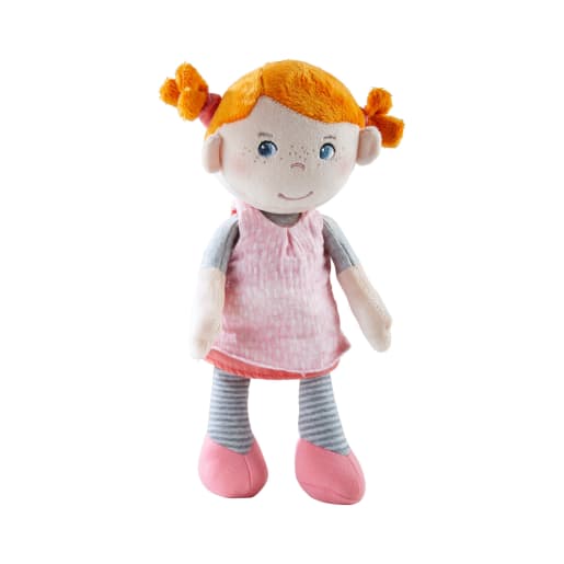 Wer möchte kuscheln? Dank der weichen Füllung und dem kuscheligen Stoff eignet sich Juna perfekt zum Liebhaben und Schmusen. Sie ist ideal als erste Puppe für Babys ab 6 Monaten und daher ein schönes Geschenk zur Geburt oder Taufe. Die Kleidung der HABA Kuschelpuppe Juna ist angenäht, so dass nichts verloren geht. Junge Puppeneltern können Juna an sich drücken und sich von ihr wunderbar trösten lassen. Selbst wenn aus Babys Kinder werden, bleibt die HABA Kuschelpuppe als Spielgefährtin, die zu kreativen Rollenspielen einlädt, noch während der gesamten Kleinkindzeit interessant.