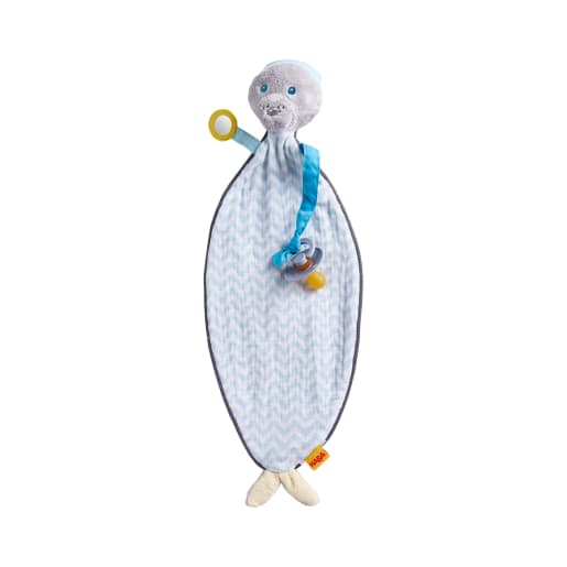 Aus dem Meer ins Kinderzimmer: Robbe Rudi von HABA ist Spielgefährte und Kuscheltuch in einem. Ausgestattet ist das Schmusetuch Robbe Rudi mit spannenden Elementen, die zum Fühlen, Spielen und Kuscheln einladen. Einmal zusammengerollt, wird aus dem Schmusetuch schnell eine süße Spielfigur, die den Kleinsten große Freude bereitet. Auch als Einschlafhilfe und Trostspender ist das hübsche Schmusetuch Robbe Rudi bestens geeignet: Selbst der Lieblingsschnuller lässt sich am Tuch befestigen und ist schnell zur Hand, wenn er gebraucht wird. Robbe Rudi von HABA ist daher eine prima Geschenkidee und empfiehlt sich für alle Babys von Geburt an.