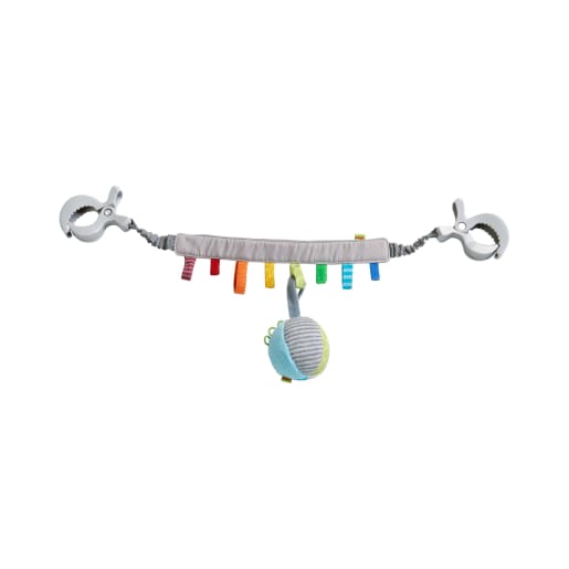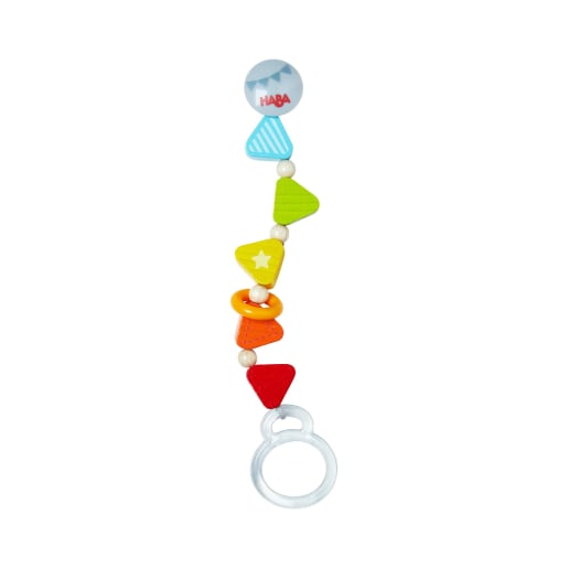 Jetzt wird es bunt! Die HABA Kinderwagenkette Regenbogenzauber ist sowohl alleine als auch zusammen mit dem kuschelweichen, rasselnden Stoffball ein toller Blickfang. Besonders praktisch: An den farbenfrohen Schlaufen lassen sich weitere zukaufbare Hängefiguren befestigen. Durch die unzähligen Kombinationsmöglichkeiten und die individuell zusammenstellbaren Elemente begeistert die HABA Kinderwagenkette Regenbogenzauber Babys immer wieder aufs Neue. Die Kleinen greifen gerne nach den Hängeelementen und trainieren so spielerisch ihre feinmotorischen Fähigkeiten. Dank der großen Befestigungsklemmen lässt sich die Kinderwagenkette überall kinderleicht anbringen. So ist in der Babyschale, dem Kinderwagen oder Kinderbett stets für gute Laune gesorgt.