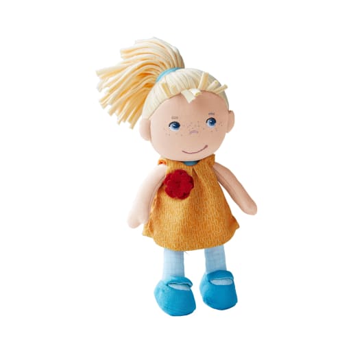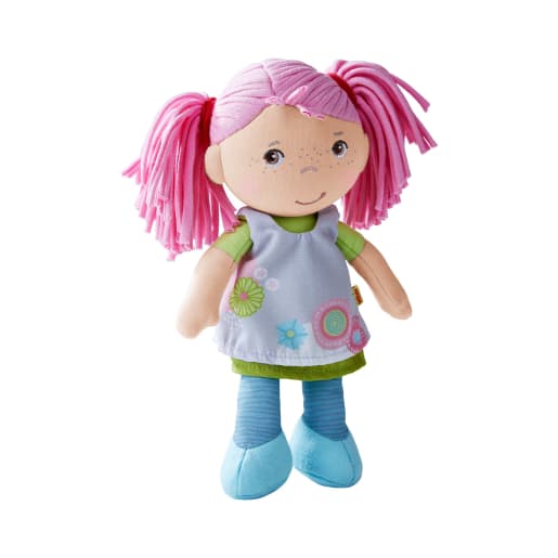 Schmusen oder Entdeckungstour? Beatrice, die niedliche Puppe von HABA, liebt beides. Das Puppen-Mädchen mit den rosa Zöpfen ist die beste Freundin für Kinder ab 6 Monaten. Ihre Kleidung in fröhlichen Farben ist fest vernäht und ihr zauberhaftes Gesicht ist detailreich gestickt. So liebevoll und hochwertig gestaltet sorgt Beatrice für gute Laune auf gemeinsamen Ausflügen ebenso wie beim Kuscheln. Die HABA Stoffpuppe für Kleinkinder mit weicher Füllung und verschmitztem Lächeln muss man einfach liebhaben! In ihrer hübschen Verpackung eignet sich die süße Puppe prima als Geschenk zu Geburt und Taufe.
