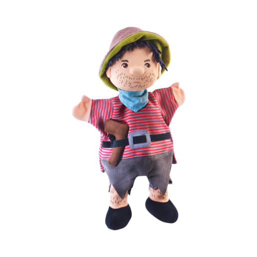 Der Räuber gehört in jedes gute Kasperletheaterstück. Die HABA Handpuppe ist liebevoll gestaltet mit vielen Details und einer Pistole aus Stoff zum Ankletten. Große und kleine Puppenspieler erwecken spannende Geschichten mit der Handpuppe zum Leben. Mit Schlapphut, Knubbelnase und Bart lädt der Räuber Kinder zum Schauen, Zuhören und Mitspielen ein. Kleinkinder ab 18 Monaten schlüpfen begeistert selbst in die Rolle des grimmigen Gesellen. Spielen und Erzählen mit HABA Handpuppen fördert die Feinmotorik sowie die sprachliche und soziale Entwicklung von Kleinkindern. Der raubeinige Räuber ergänzt optimal das Ensemble des HABA Puppentheaters.