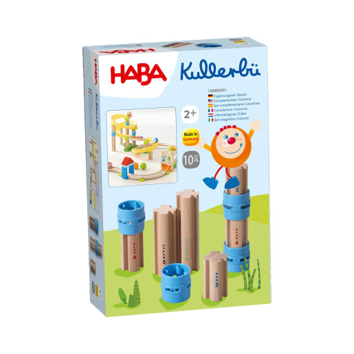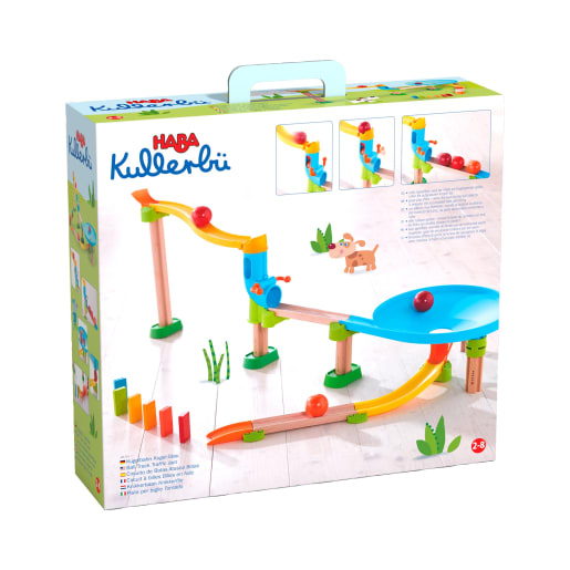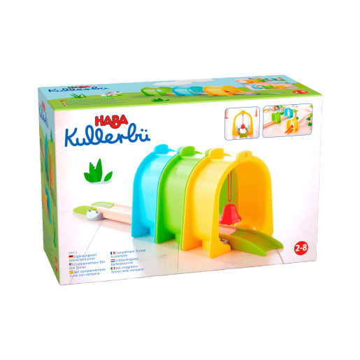 Der Glöckchentunnel ist eine tolle Ergänzung für alle Kullerbü-Spielbahnen. Kugeln und Fahrzeuge rollen durch den Tunnelund bringen das Glöckchen zum Klingeln. Besonders praktisch: Die Tunnelbögen können als Träger für Brücken in die Spiellandschaften integriert werden. Da geht es drunter und drüber! So ein Tunnel gehört zu jeder Spielzeug-Eisenbahn. Das Set enthält eine gerade Holzschiene. Ganz flexibel können die Tunnelelemente in Kurven eingesetzt werden. Kinderleicht sind die Kullerbü-Spielbahnen aufzubauen und immer wieder neu zu gestalten. Das clevere Stecksystem und die robusten Teile aus Holz und stabilem Kunststoff sorgen immer wieder für riesen Spiel-Spaß mit HABA.