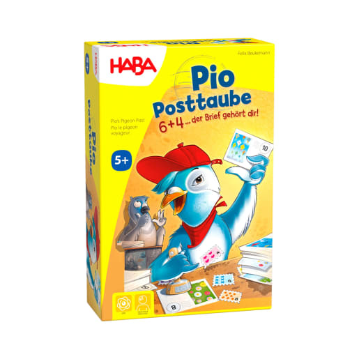 Pio Posttaube braucht die Hilfe kleiner Zahlen-Versteher. Bei dem genialen HABA Postspiel errechnen die Kinder das Porto für die Briefe. So gewinnen sie spielerisch Sicherheit beim Addieren im Zahlenraum von 1 bis 20. Das Rechenspiel ab Vorschule macht der ganzen Familie Spaß. Beim Kombinieren der unterschiedlichen Briefmarken trainieren die Kinder Konzentration und schnelles Denken. Wer die meisten Briefe und Postkarten richtig frankieren kann, gewinnt das liebevoll gestaltete Mathe-Spiel. Spielend lernen mit HABA.