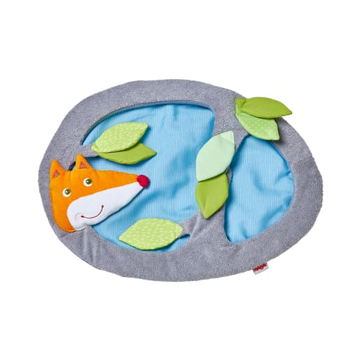 Plitsch, platsch – Badetag im Wald! Und Babys können zusammen mit dem Fuchs entdecken, was hier alles schwimmt: Pilze, Eicheln und Walderdbeeren lassen sich leicht mit den Händen hin und her bewegen. Das macht Spaß und stärkt die Motorik in Bauchlage. Die mit Wasser gefüllte Spielmatte von HABA ist von einer weichen Stoffhülle umgeben, sodass Babys angenehm liegen.