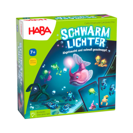Die Würfel fallen und der rasante Tauchgang beginnt: Die Spieler:innen durchwühlen gleichzeitig die Tiefseekarten und suchen den passenden Unterwasserschwarm. Doch die leuchtenden Meerestiere stehen nicht still! Es gilt, genau hinzuschauen und sich nicht zu vergreifen, sonst gibt’s Minuspunkte. Wer in fünf Tauchgängen die wenigsten Minuspunkte sammelt, gewinnt.