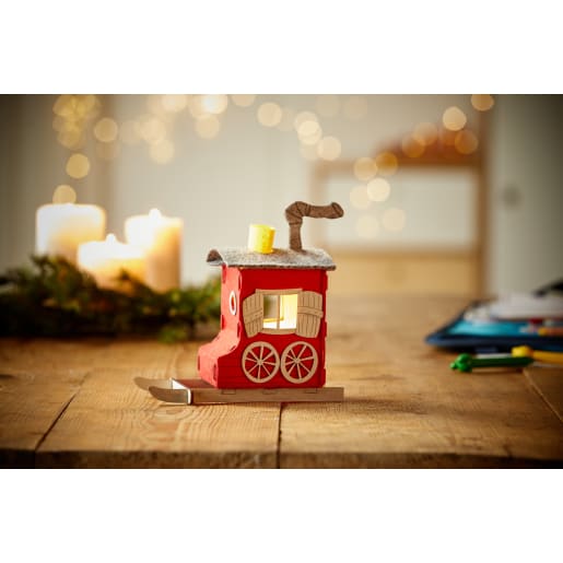 Bastelset aus Filz. So geht's: Holzteile mit Buntstiften, Fasermalern oder Acrylfarben bemalen und nach dem Trocknen mit den Filzteilen zusammenstecken. Und wie wäre es mit einer Girlande aus Garn mit ausgeschnittenen Sternen, die am Elomobil aufgehängt werden kann? Für die weihnachtliche Beleuchtung kann ein elektrisches Teelicht sorgen. Passt perfekt zu den Filzfädelingen Weihnachtsfreunde (1394664).Maße: 19 x 19 x 7,5 cm.