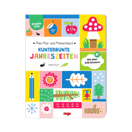 Mit dem „Kreativ Kids - Mein Mal- und Mitmachbuch - Kunterbunte Jahreszeiten“ von HABA werden die vier Jahreszeiten besonders lebendig! Kleine Künstler dürfen sich auf den bunten Ausmalseiten austoben und spielerisch Buchstaben- und Zahlenrätsel lösen. Das HABA Mal- und Mitmachbuch enthält außerdem über 140 Sticker, mit denen die Kinder einige der Rätselaufgaben lösen oder eigene Bilder verzieren können. Mit 96 kunterbunten Mal- und Rätselseiten bietet „Mein Mal- und Mitmachbuch - Kunterbunte Jahreszeiten“ aus der HABA Serie Kreativ Kids Kindern eine schöne Beschäftigung für längere Zeit. Nebenbei schult es Kreativität und Fantasie und vermittelt spielerisch erstes Wissen rund um die vier Jahreszeiten.