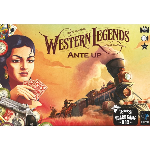 Artikelzustand: Schachtelkante leicht eingerissen Während sich das Land der unbegrenzten Möglichkeiten weiter nach Westen ausbreitet, warten unsagbarer Reichtum auf diejenigen, die ihren Namen in der Geschichte verewigen wollen. Einige werden mit dem Revolver in der Hand zur Legende, andere zocken sich durch den Weg der Schande. Schwarzer Rauch steigt aus dem Schornstein der Lokomotive während sie sich nähert. Hinter ihr im wolkenlosen Horizont ruft dich eine Stadt namens Buzzard Gulch.Western Legends «Ante Up» erhöht die Einsätze mit neuen Feature wie das Minispiel Faro, wie ein Zug, der über die Spielbretter fährt und vieles mehr. Ante up enthält neue Charakteren, Gegenständen, Man in Black Karten und Pokerkarten um sie einzumischen oder sie mit denen vom Grundspiel zu ersetzen.